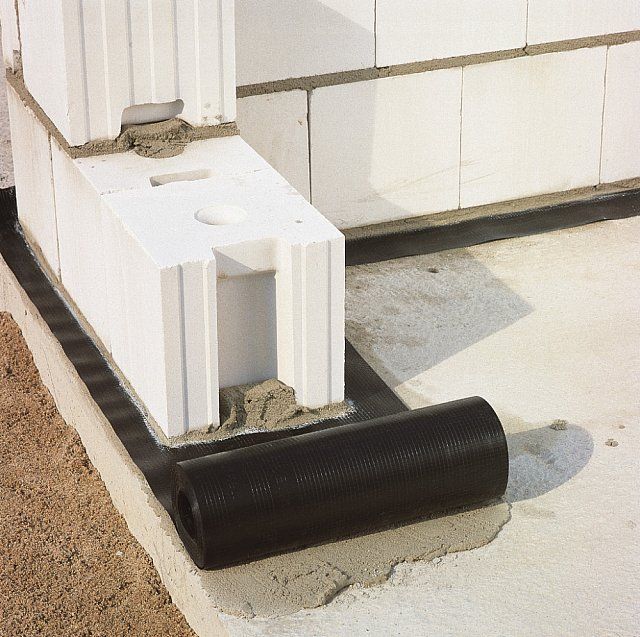 - Верх фундамента или цокольного этажа покрывается слоем гидроизоляции для защиты от капельного проникновения влаги (атмосферные осадки) в тело основных стен здания.